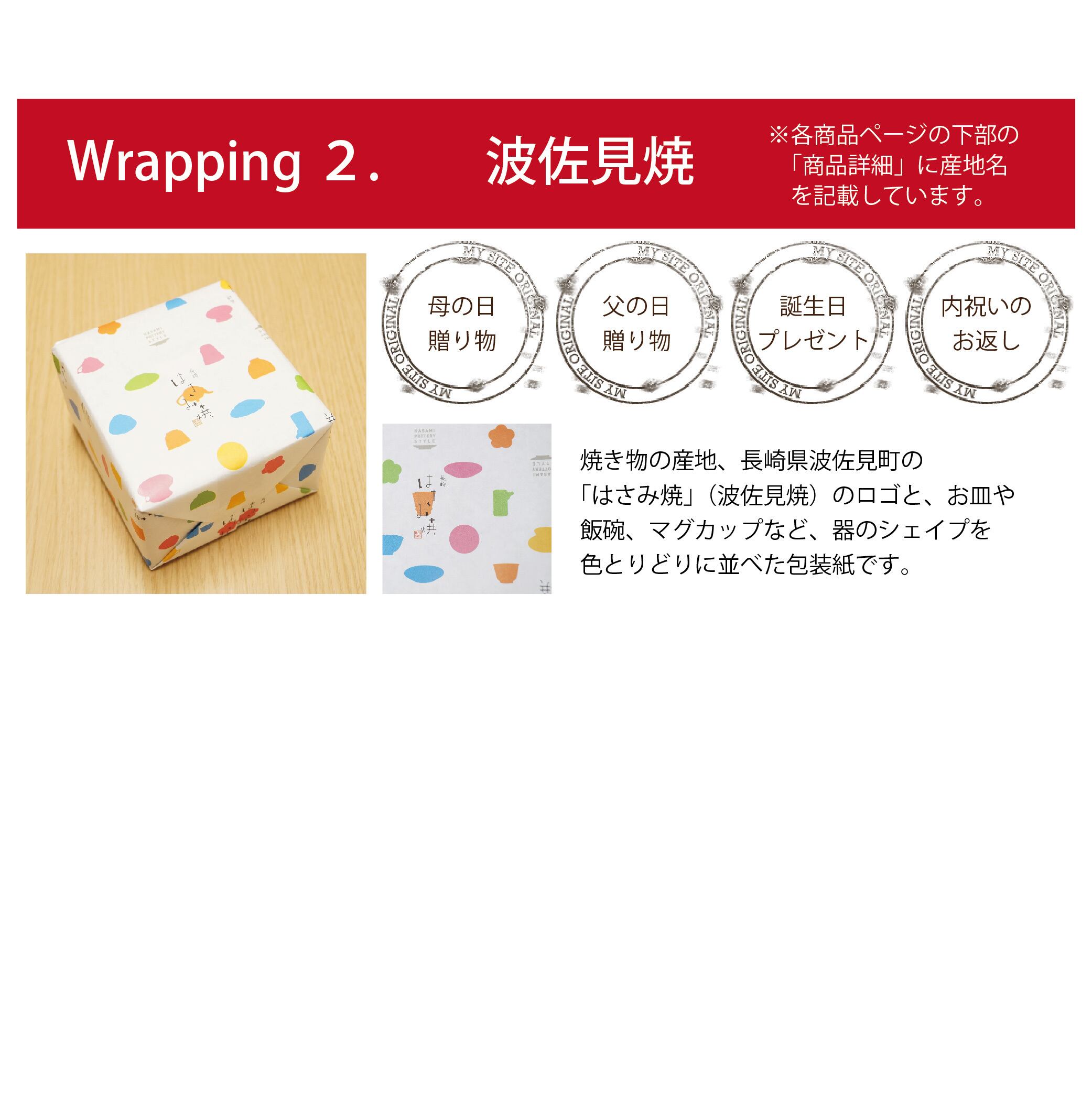 包装紙(波佐見焼) ※商品とご一緒にご注文ください。 ※ラッピングご希望個数分をご注文ください。 ◇熨斗 熨斗をお選びの方は、備考欄に『表書き』と『名前』をご指示ください。